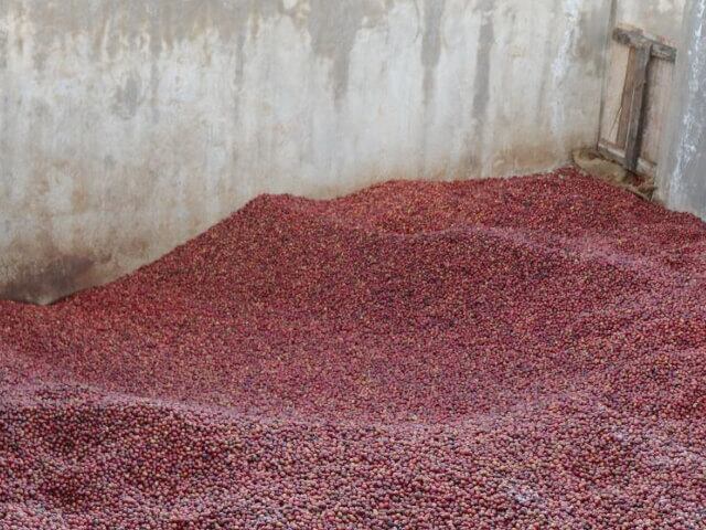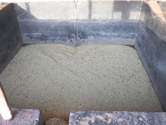 パルピングされたウェットパーチメントは一晩発酵槽に留まりミューシレージを分解し、翌日水洗、またソーキングを経て乾燥テーブルに広げられます。乾燥テーブルはムラなく乾燥ができるように通気が確保され、またテーブルを高くすることで十分な空気が乾燥場にいきわたる様に設計されています。乾燥は1週間から10日ほどかけて行いますが、この間頻繁に攪拌や選別を繰り返し、一級品のドライパーチメントがドライミルに送られていきます。