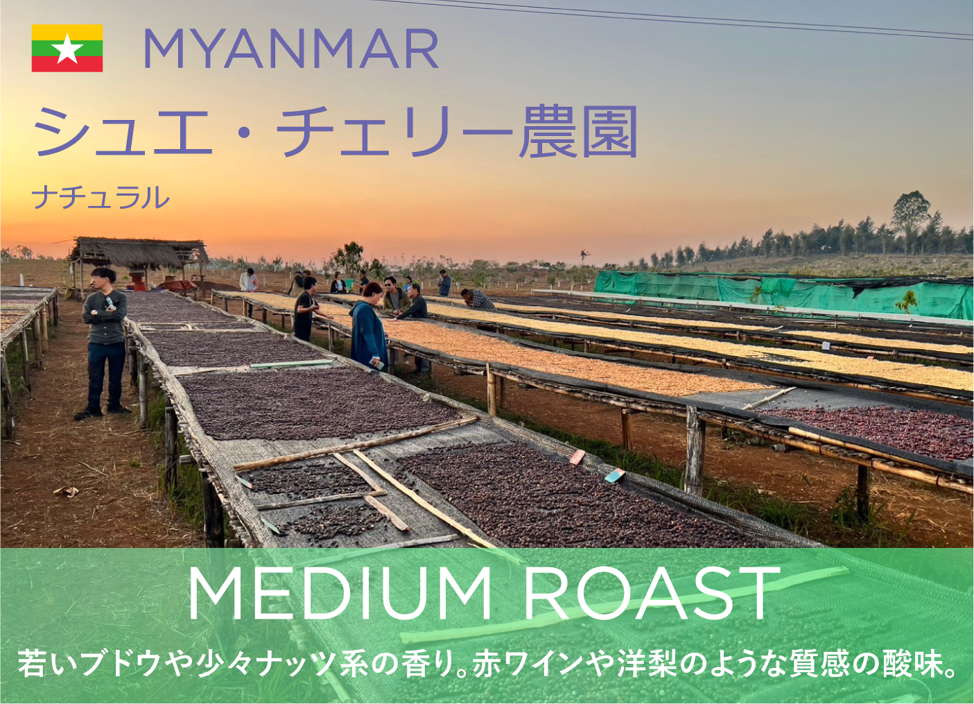 ミャンマー シュエ・チェリー農園 ナチュラル - Medium Roast 浅煎り -(100g~)